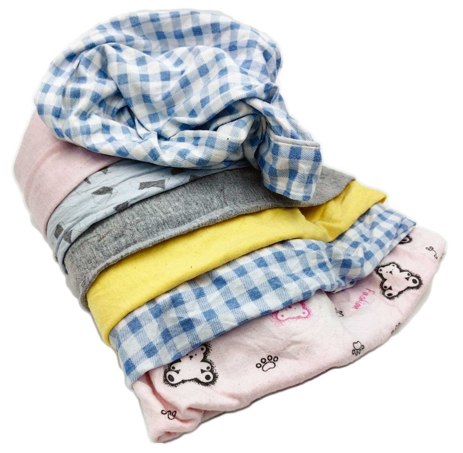 Ветошь "Светлый трикотаж" - это переработанная одежда second-hand из трикотажных х/б тканей светлых тонов: майки, футболки, водолазки, постельное трикотажное белье и др. Куски неправильной формы размером, примерно, 40х60 см. Количество лоскутов в одном брикете - 100-120 шт.
