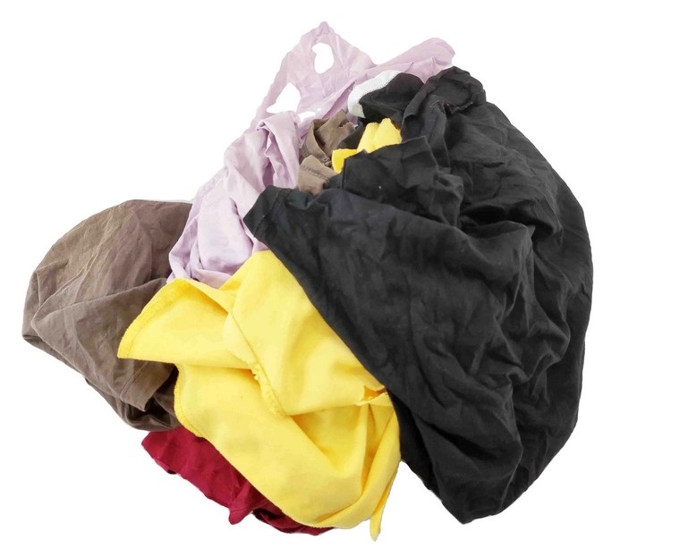 Ветошь "Цветной трикотаж" - это переработанная одежда second-hand из трикотажных х/б тканей: майки, футболки, водолазки, постельное трикотажное белье и др. Куски неправильной формы размером, примерно, 40х60 см. Количество лоскутов в одном брикете - 100-120 шт.