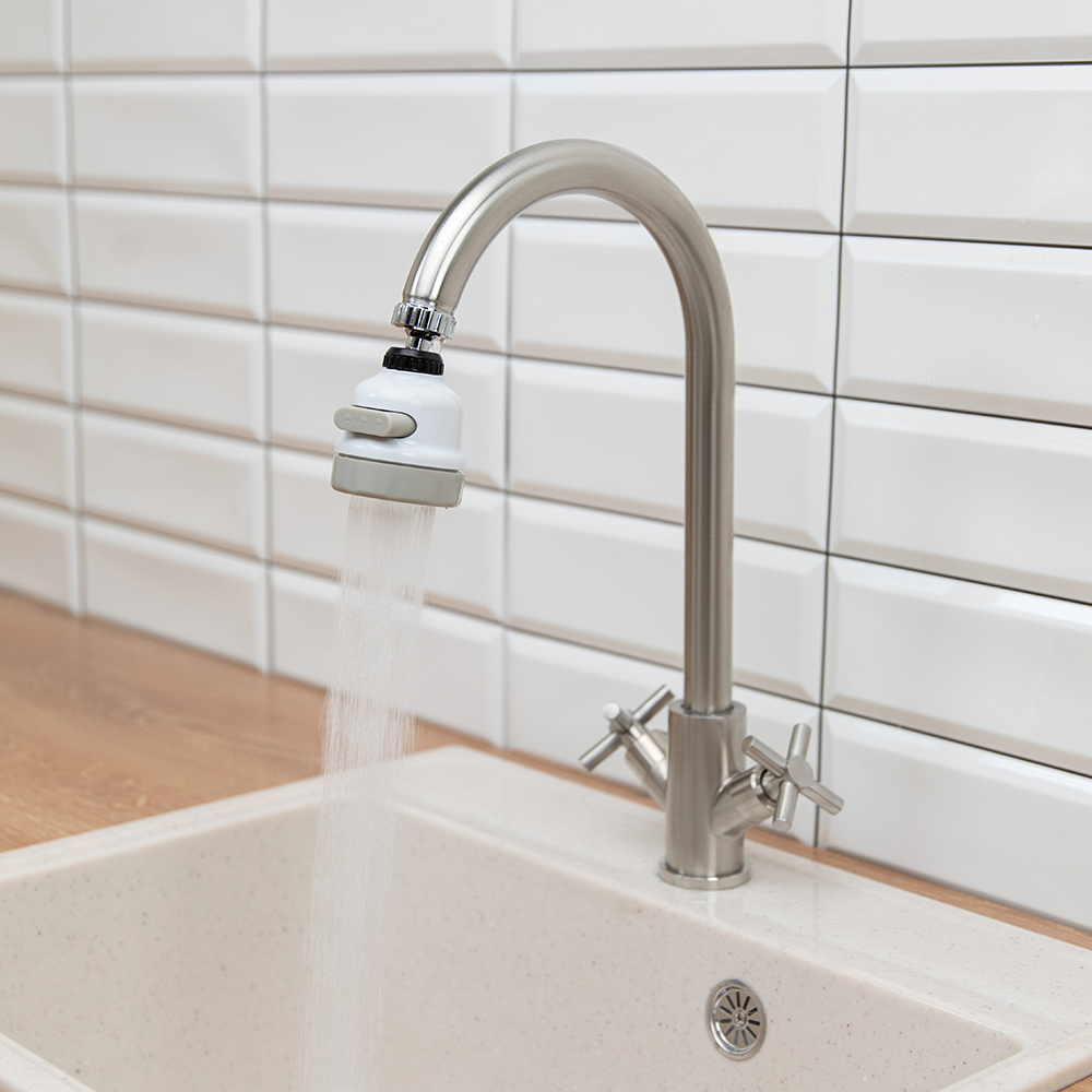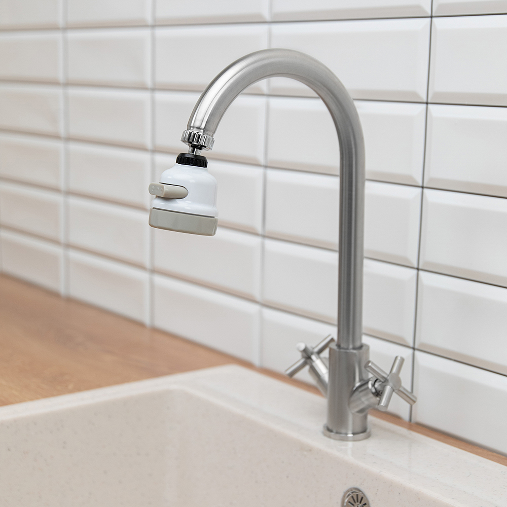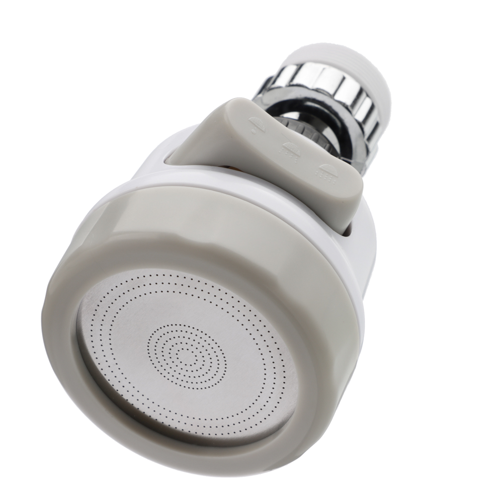 Аэратор закрепляется на носике крана и служит для ограничения потока воды без снижения интенсивности струи. Вода, проходя через несколько сеток устройства, смешивается с воздухом - на выходе получается визуально мягкая струя. Благодаря тому, что подмешивание воздуха в аэраторе происходит постоянно, давление в смесителе кажется неизменным, несмотря на то, что расход воды уменьшается. Обладает тремя режимами подачи воды.