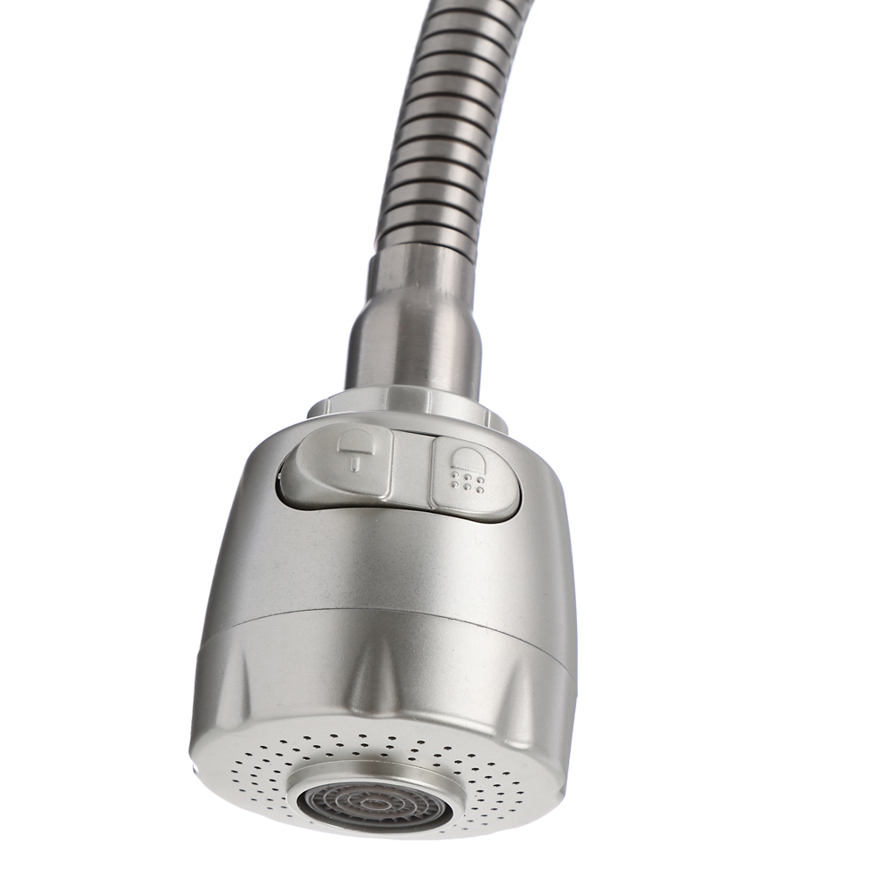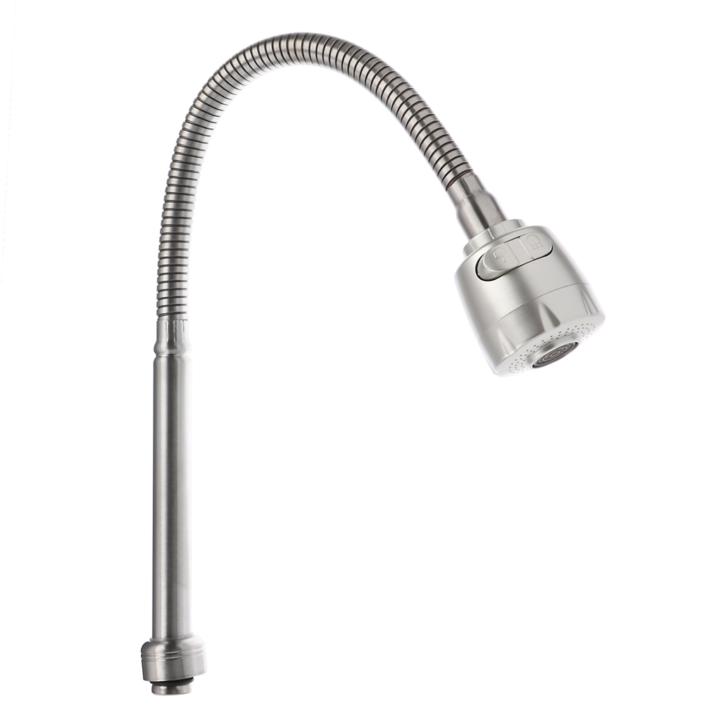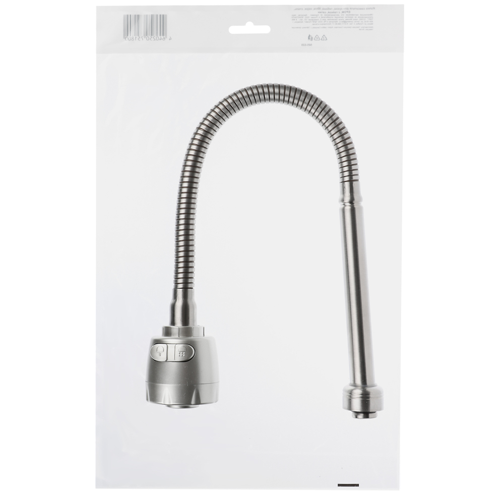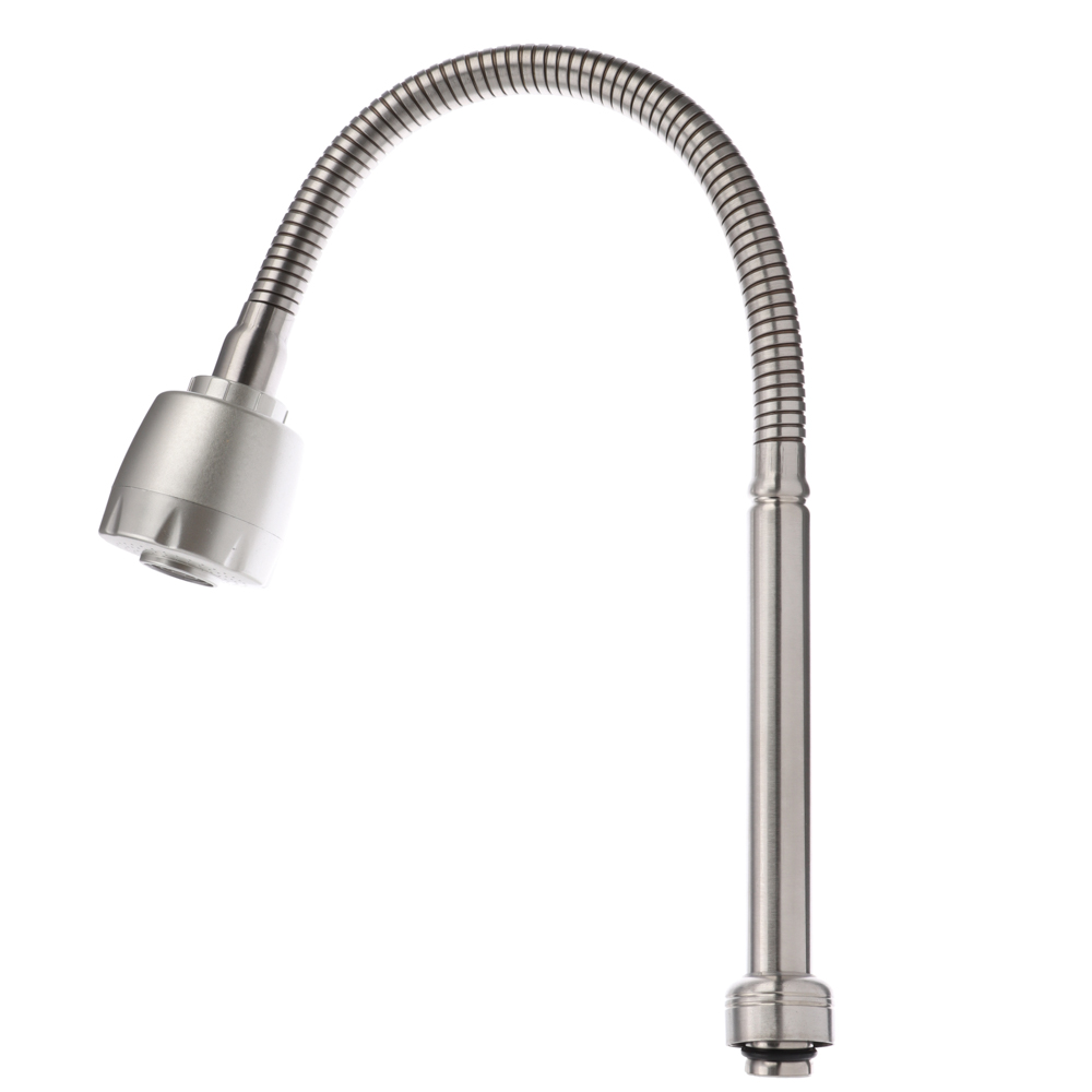 Излив смесителя для кухни длиной 50 см – это гибкий излив из нержавеющей стали с элементами из EPDM-резины с гайкой с обработкой поверхности «сатин». Удобен для мытья посуды, овощей и фруктов, а также при помощи него удобно набирать воду в кастрюлю любого объема и высоты. Предусмотрена регулировка подачи воды: струя или душ с удобным переключателем. Изделие не боится коррозии, легко очищается от водяных разводов и отложений.