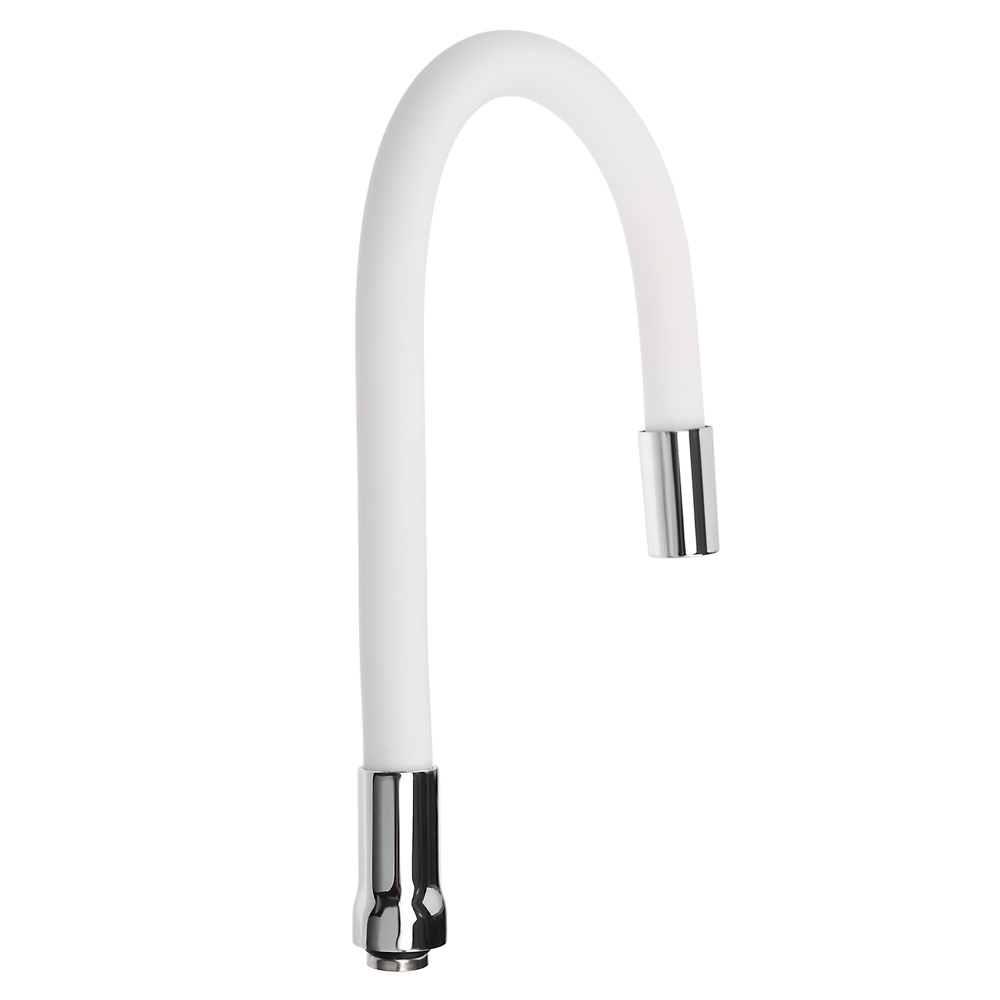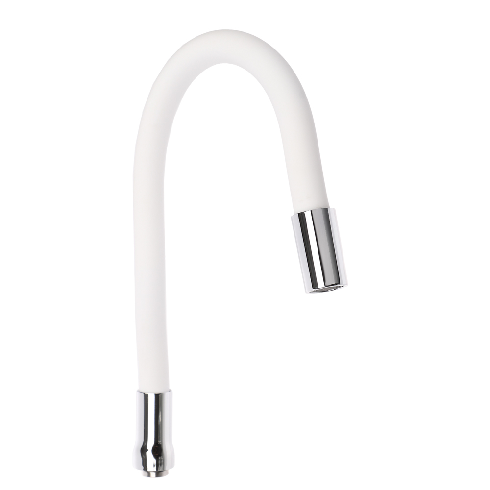 Гибкий силиконовый излив для кухонного смесителя длиной 50 см создан для максимального удобства на современной кухне – его можно сгибать как угодно, и он сохраняет нужную форму. Благодаря этому мыть посуду и наливать воду стало гораздо удобнее. Излив оснащен одним режимом подачи воды, который обеспечивает оптимальный поток без разбрызгивания благодаря специальной конструкции носика. Плотный силиконовый материал устойчив к перепадам температур и механическим воздействиям, а гладкая поверхность не накапливает грязь и легко очищается. Стильный белый цвет излива гармонично впишется в дизайн любой кухни, дополняя современную технику и мебель. Установка гибкого излива не требует специальных инструментов – он легко подключается к большинству стандартных кухонных смесителей.