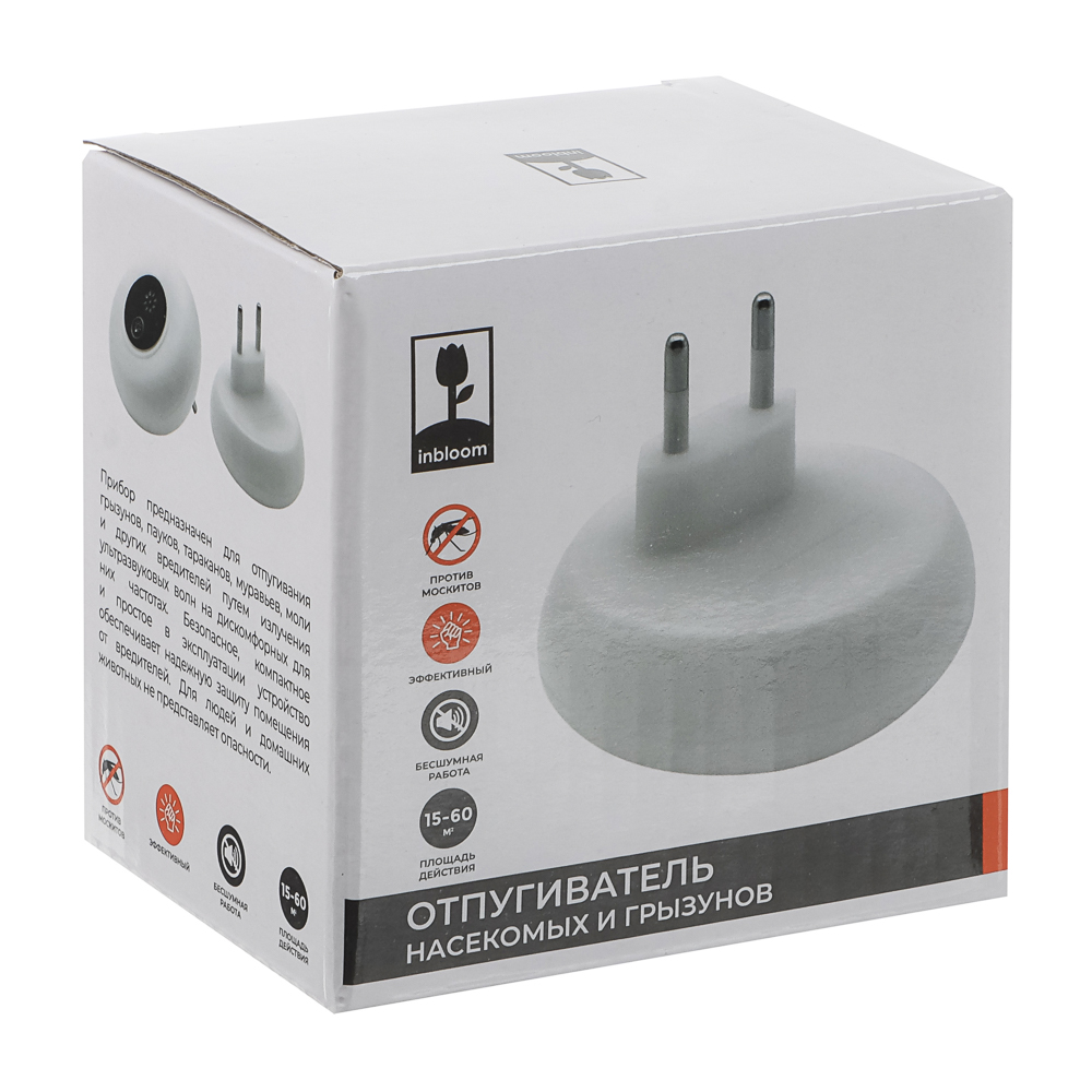 Грызуны – насущная проблема, которую в кротчайшие сроки решит ультразвуковой отпугиватель INBLOOM. Прибор размером 7,5х7,5х5,5 см действует оперативно: результат можно оценить уже через 2 недели пользования. Данный отпугиватель издает ультразвук на дискомфортных для грызунов частотах, при этом ультразвук не воспринимается человеческим ухом и не представляет опасности для людей и домашних животных. Мощность составляет 3 Вт. Работает от сети 220 В. Позволяет покрыть площадь до 60 м2.