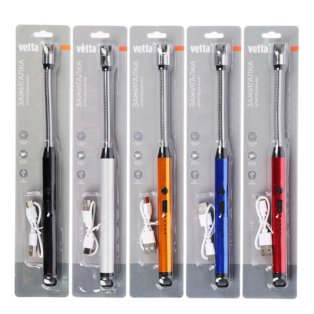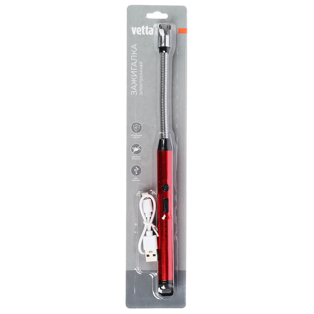 VETTA Зажигалка кухонная электронная — это удобное и практичное устройство для вашей кухни. Она работает от батареек и заряжается через USB-кабель, обеспечивая надёжное и безопасное зажигание газовых плит.