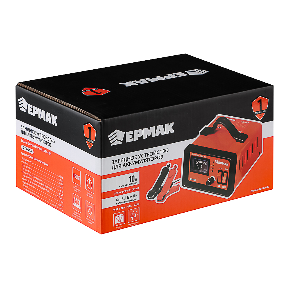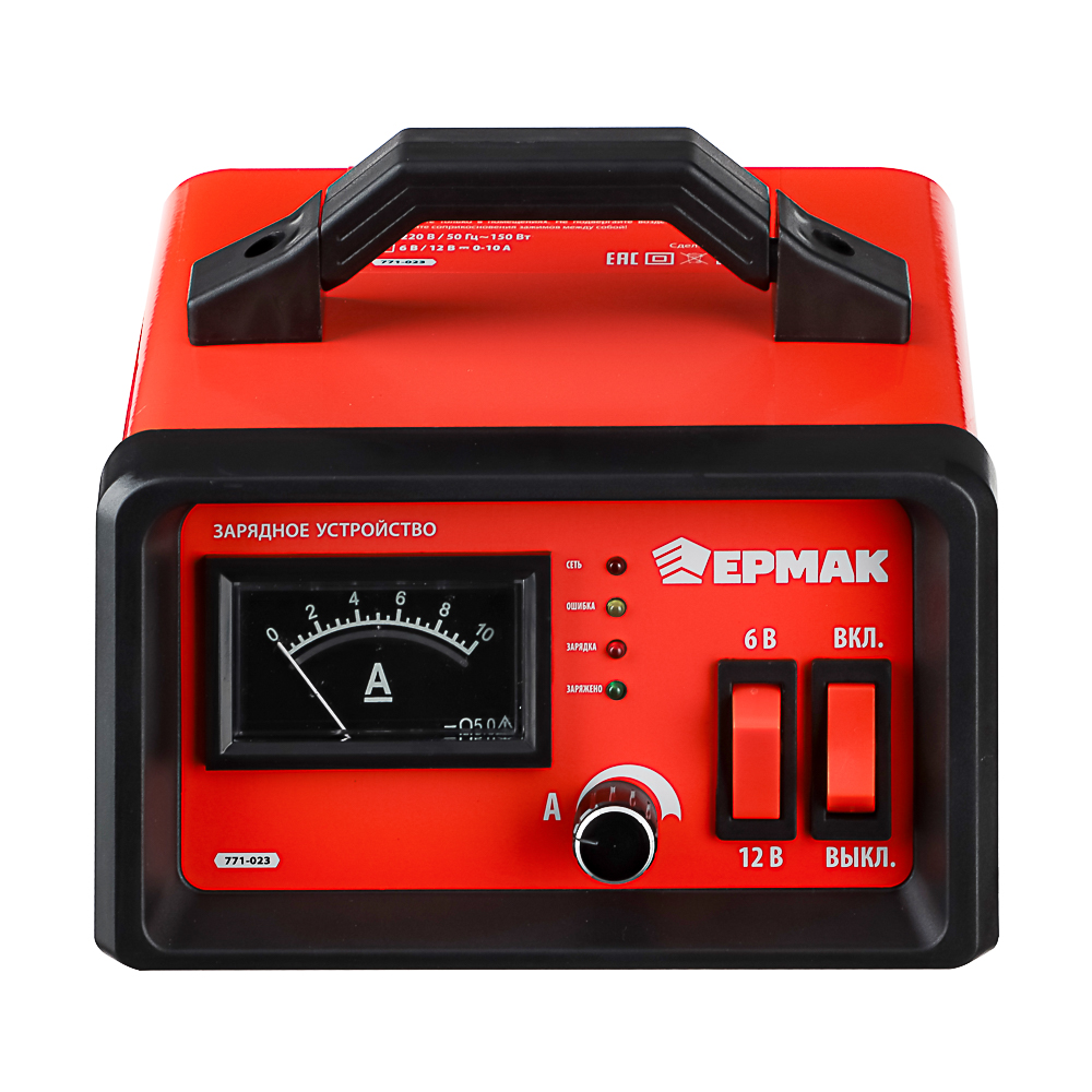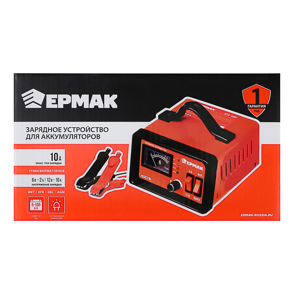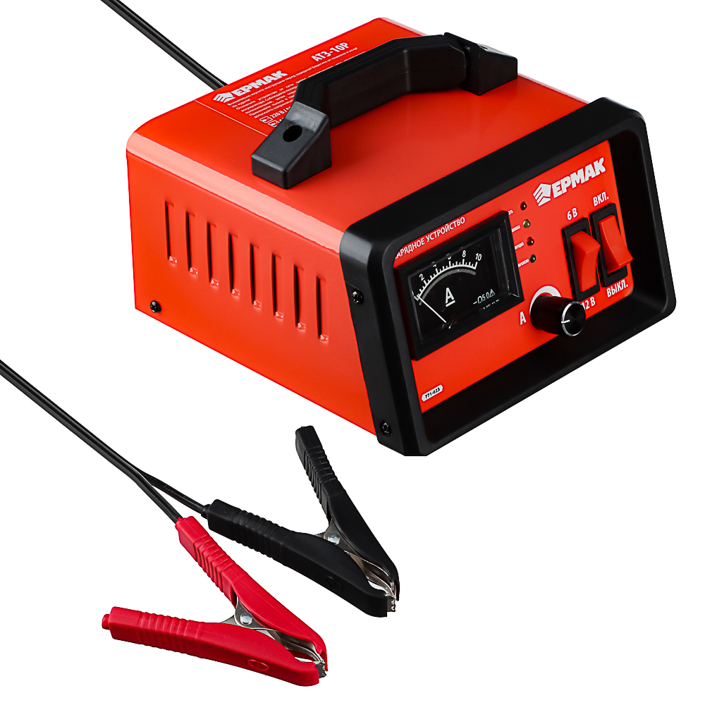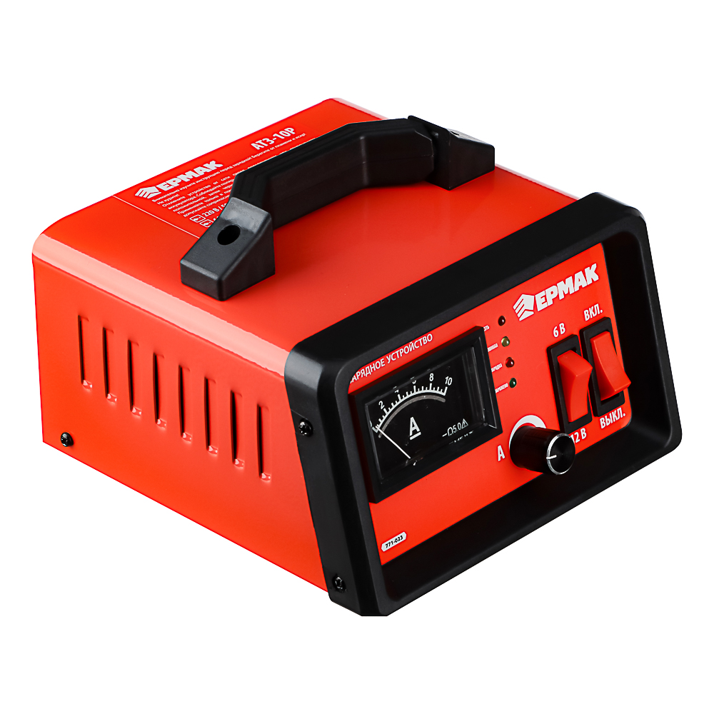 Зарядное устройство автоматическое АТЗ-10Р ЕРМАК 0-10А, 6В/12В. Выполнено из металлического корпуса, для улучшения тепло обмена. Предназначено для бережной и эффективной зарядки. Плавная ручка для регулировки тока позволит выбрать оптимальный объём энергии необходимый именно Вам. Оснащен амперметром для контроля зарядки. Для безопасного использования оснащено защитой от перегрева и коротких замыканий. Технические характеристики:Частота 50 Гц;Мощность от 0 до 10 А;Регулировка тока зарядки 145 Вт;Напряжение Аккумулятора 6-12 В;Емкость аккумулятора 10-75 мАч;Предохранитель 3,15 А.