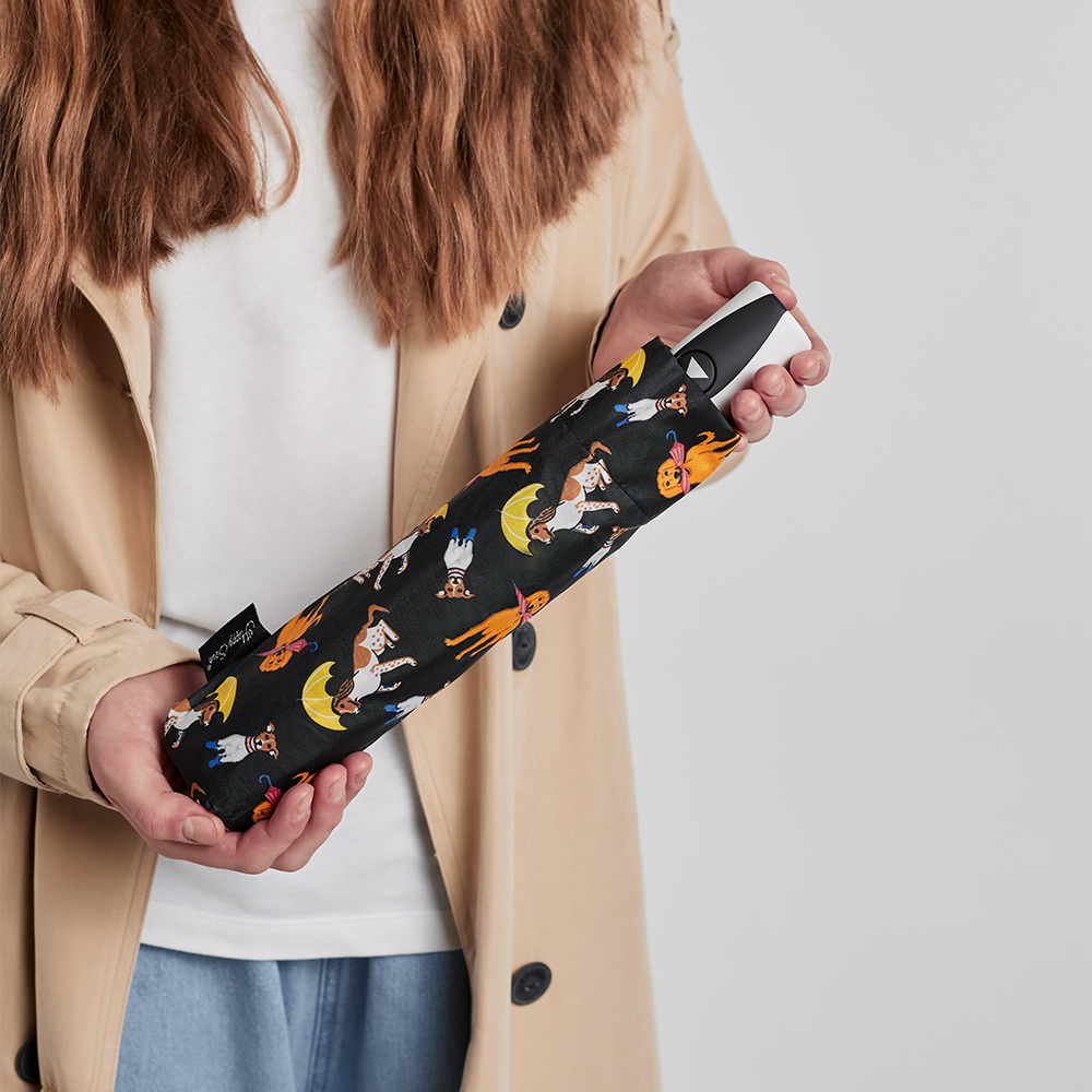 Полуавтоматический зонт радиусом 55 см с 8 спицами – отличный выбор для любителей городских прогулок под дождем. Надежно защищает от осадков не только голову, но и тело. Имеет привлекательный дизайн, который сочетается с самыми разными образами: будет привлекательно смотреться как с женственным пальто, так и со спортивной курткой. Кнопка раскрытия удобно расположена на ручке и характеризуется плавным нажатием. Предусмотрен ремешок для переноски и хранения на крючке.